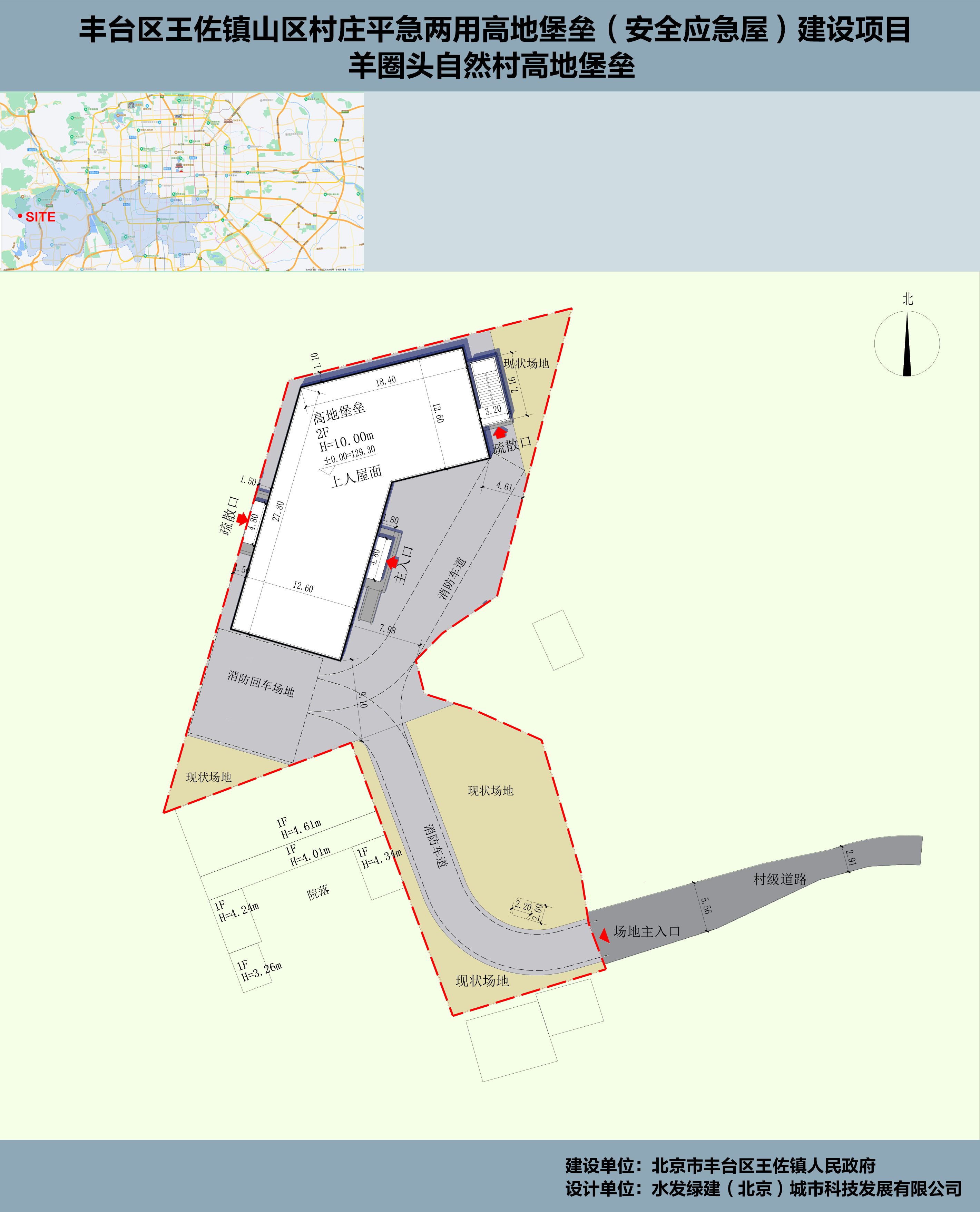 建设单位意见:为全面提升我市山区村庄防汛避险救灾能力,市委办公厅、市政府办公厅印发《关于提升防汛避险救灾能力的若干措施》的通知(京办发〔2025]9号),明确要求“规划建设应急避险空间。每个山区自然村建成一处平急两用的高地堡垒(安全应急屋),配备应急通信、储能设施和生活物资”。为落实市、区关于防汛避险救灾工作的指示精神,加快补齐我区山区防汛工作短板,推进应急避险空间规划建设,我镇选址新建两处高地堡垒项目,分别位于王佐镇西庄店村委会东侧地块、羊圈头自然村。
