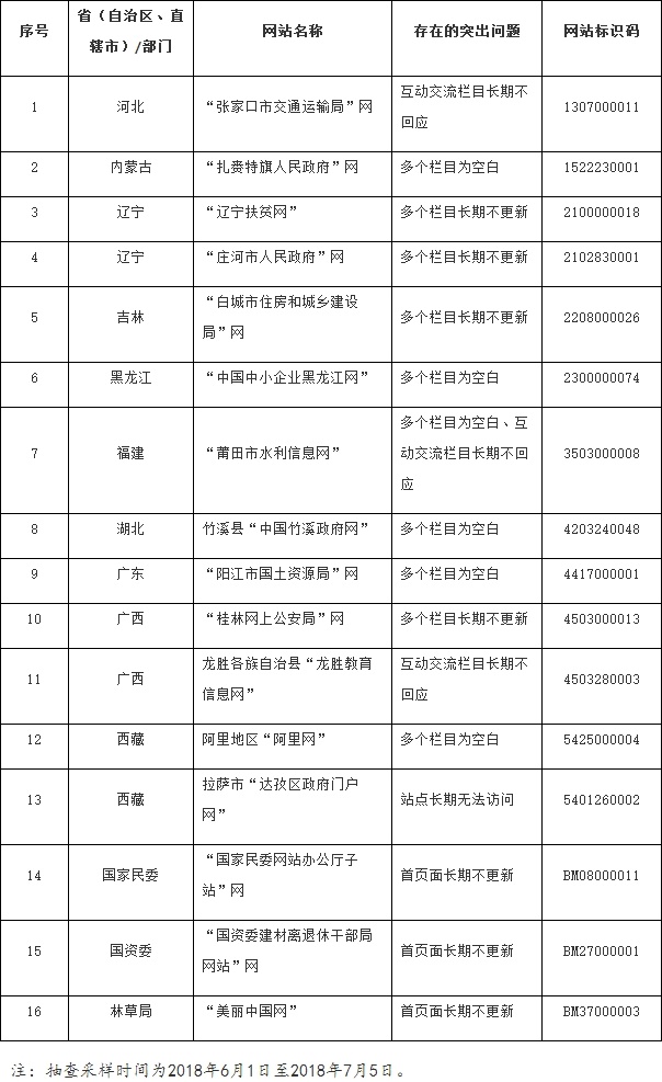 抽查发现存在突出问题的政府网站名单