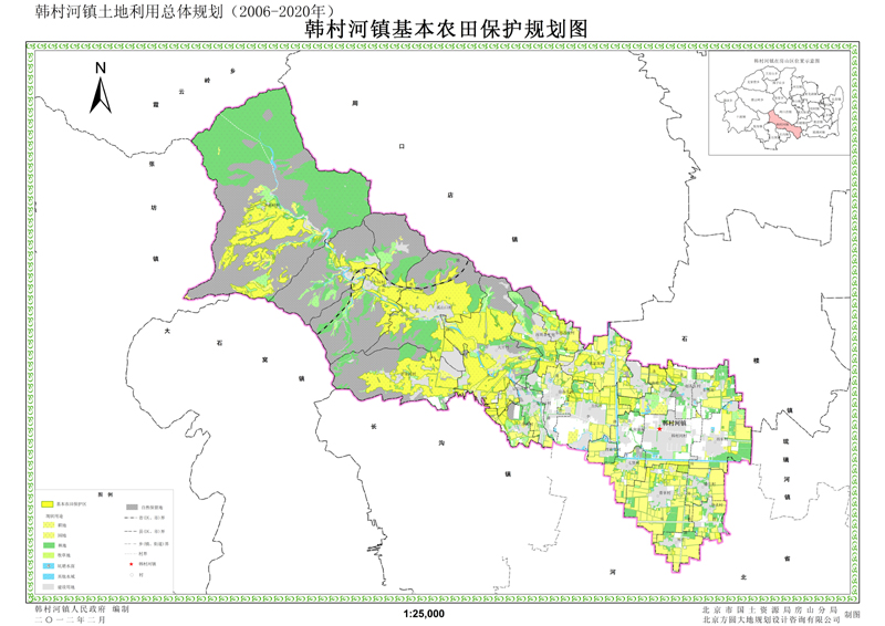 为贯彻“十分珍惜、合理利用土地和切实保护耕地”的基本国策,实现耕地总量动态平衡,合理利用和优化配置各类用地,协调城乡区域土地利用,实现经济社会持续、健康、稳定的发展,按照《中华人民共和国土地管理法》以及土地利用总体规划编制的有关文件和上级下达的指标要求,我镇已编制了《房山区韩村河镇土地利用总体规划(2006-2020年)》(以下简称《规划》),并经北京市人民政府批准。