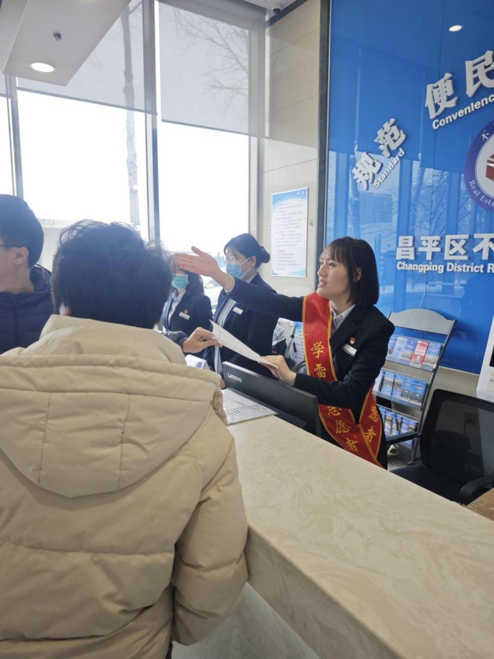 昌平区不动产登记中心通过温情引导、“上门+延时”服务、延伸触角三个维度,将学雷锋志愿服务深度融入登记工作全链条。从大厅内的贴心指引到群众家中的上门办理,从政策宣传的精准覆盖到历史遗留问题的有效化解,中心干部职工们用实际行动诠释了新时代雷锋精神的深刻内涵,生动展示党建引领下不动产登记队伍的良好精神风貌,让“奉献、友爱、互助、进步”的志愿精神在基层一线熠熠生辉、持续闪光。