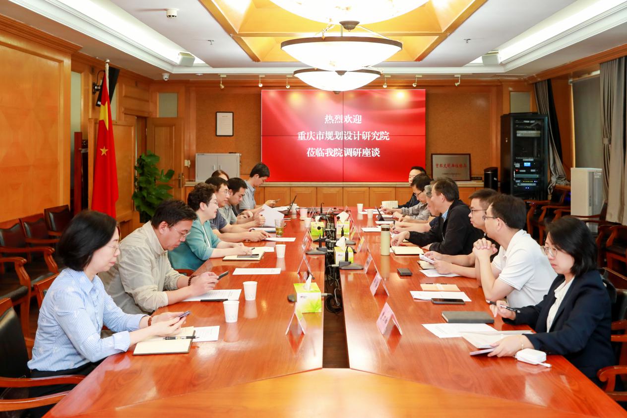 9月19日上午,重庆市规划设计研究院院长陈翰新一行赴北京市规划院开展调研交流。本次座谈以“十四五工作回顾与十五五谋划展望”为主题,旨在通过深入对话,共同探索新时期规划院所在业务、科技和人才方面的高质量发展路径。会议由院党委书记刘虹同志主持,院党委副书记张晓昕、总工办、人事处、计财处及数字中心等部门负责人参加会议讨论。