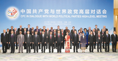 习近平指出,中共十九大规划了中国从现在到本世纪中叶的发展蓝图,宣示了中方愿同各方推动构建人类命运共同体的真诚愿望。政党在国家政治生活中发挥着重要作用,也是推动人类文明进步的重要力量。年终岁末,来自世界各国近300个政党和政治组织的领导人齐聚北京,共商合作大计,充分体现了大家对人类发展和世界前途的关心。
