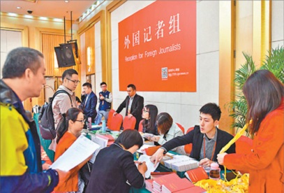 10月11日,设在北京梅地亚宾馆的十九大新闻中心正式开始对外接待服务,为境内外记者采访十九大提供服务保障。