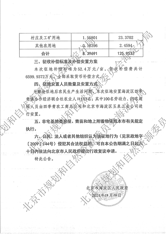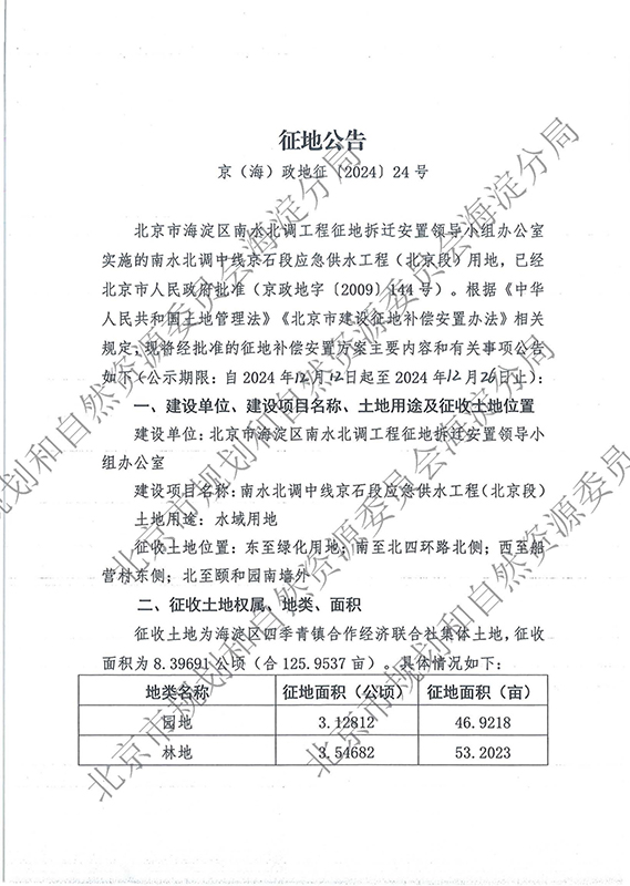 京(海)政地征〔2024〕24号-南水北调中线京石段应急供水工程(北京段)