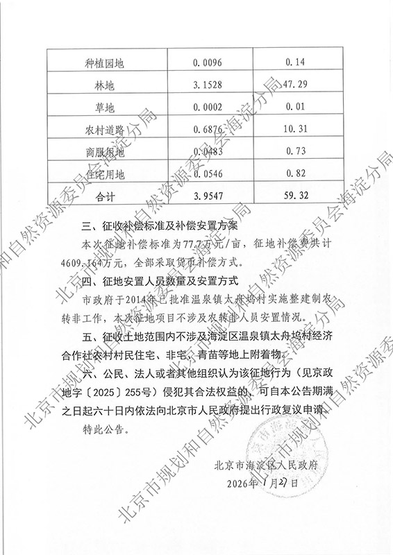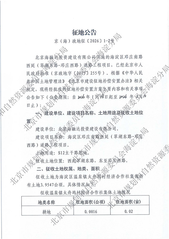 征地公告-京(海)政地征〔2026〕1-2号-温泉镇太舟坞村