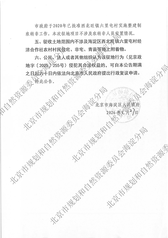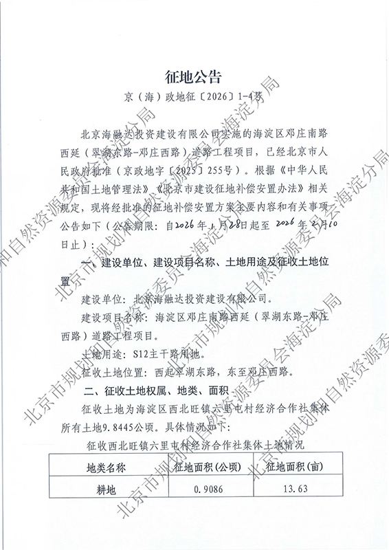 征地公告-京(海)政地征〔2026〕1-4号-西北旺镇六里屯村