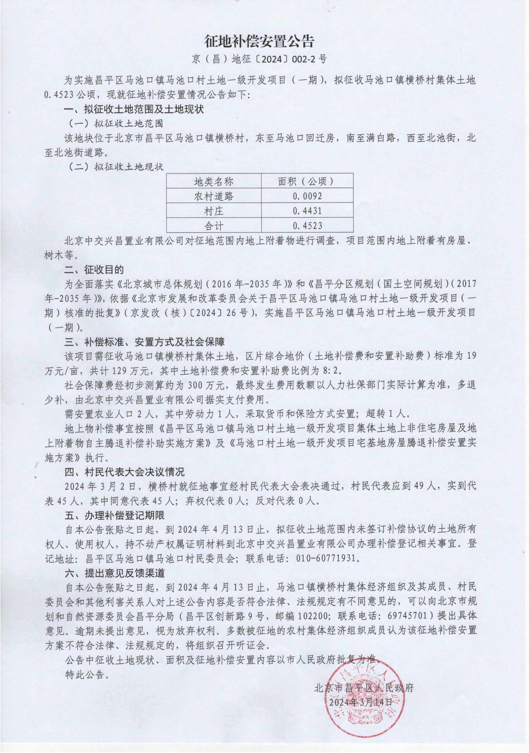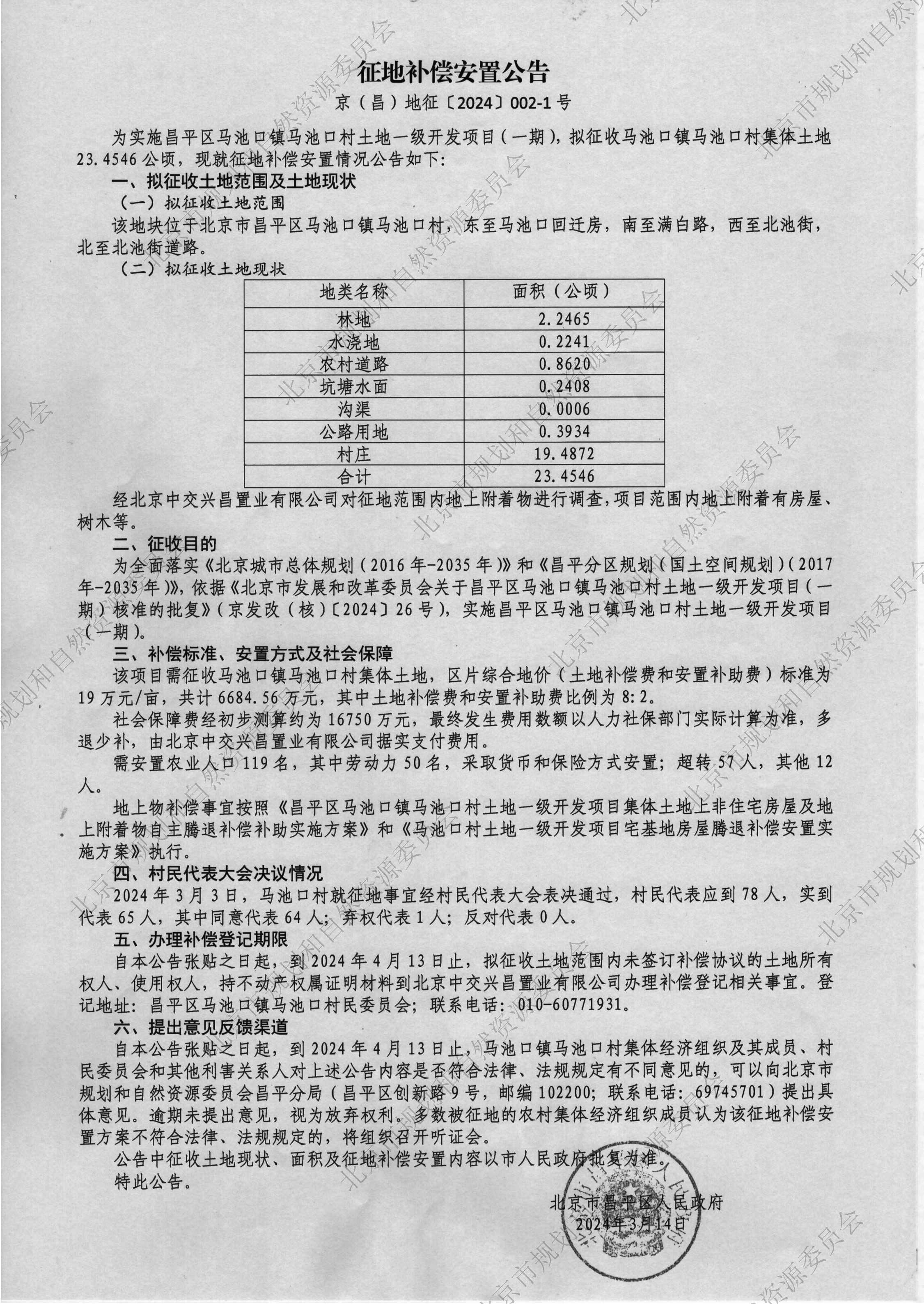 征地补偿安置公告(京(昌)地征〔2024〕002号)