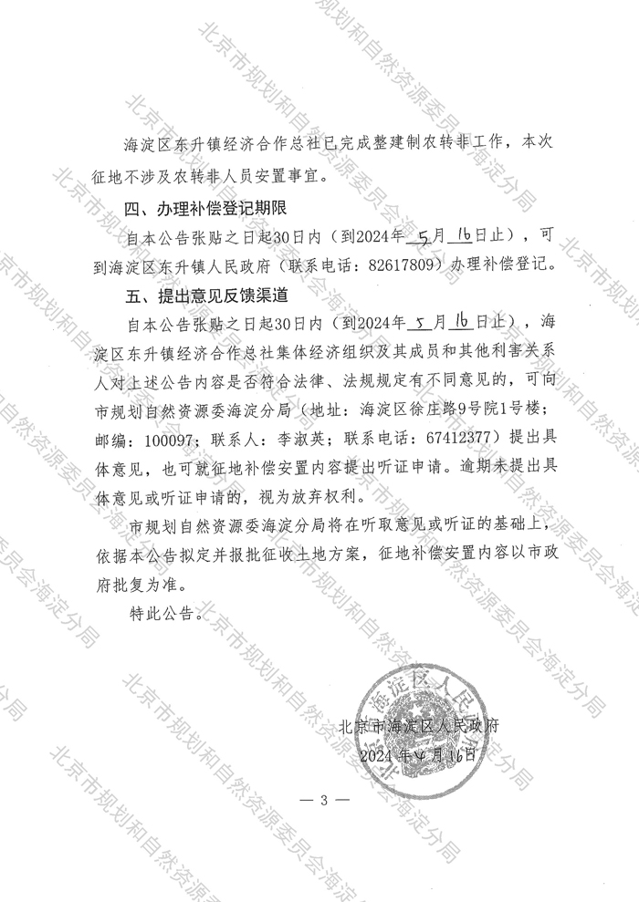 > 海淀征地报批前公示
