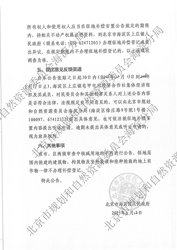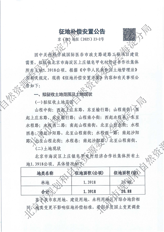 > 海淀征地报批前公示