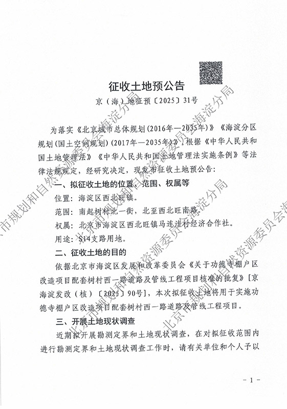 征收土地预公告-京(海)地征预〔2025〕31号-海淀区西北旺镇